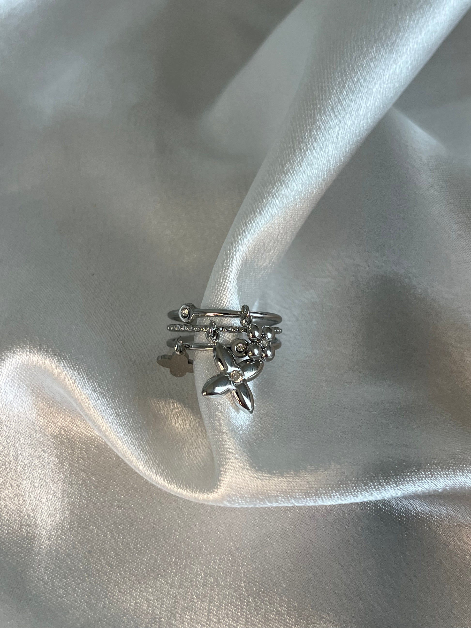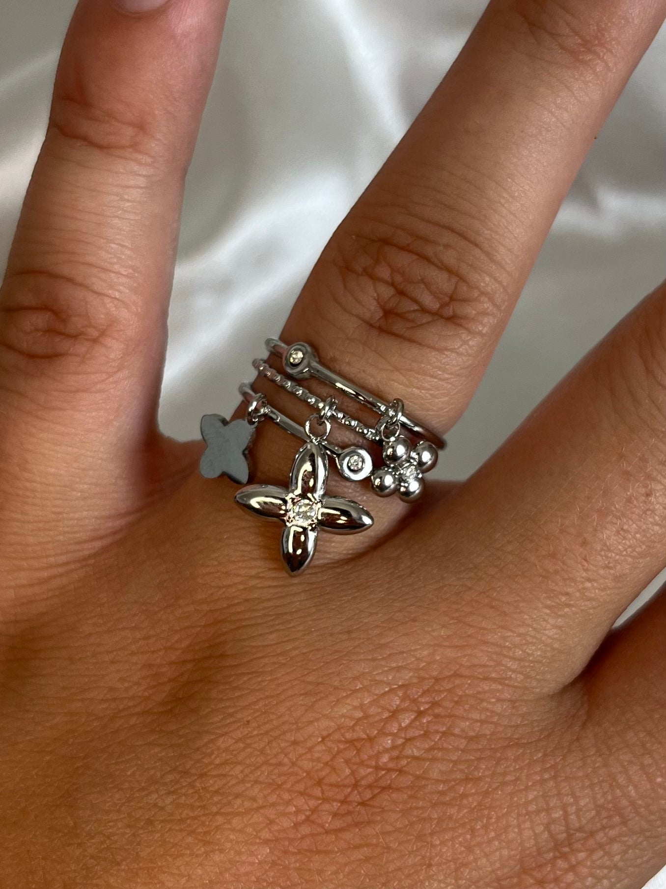 La bague LÉONIE se distingue par ses petites breloques délicates. Un bijou unique qui allie finesse et fantaisie, parfait pour apporter une touche de caractère à vos looks.