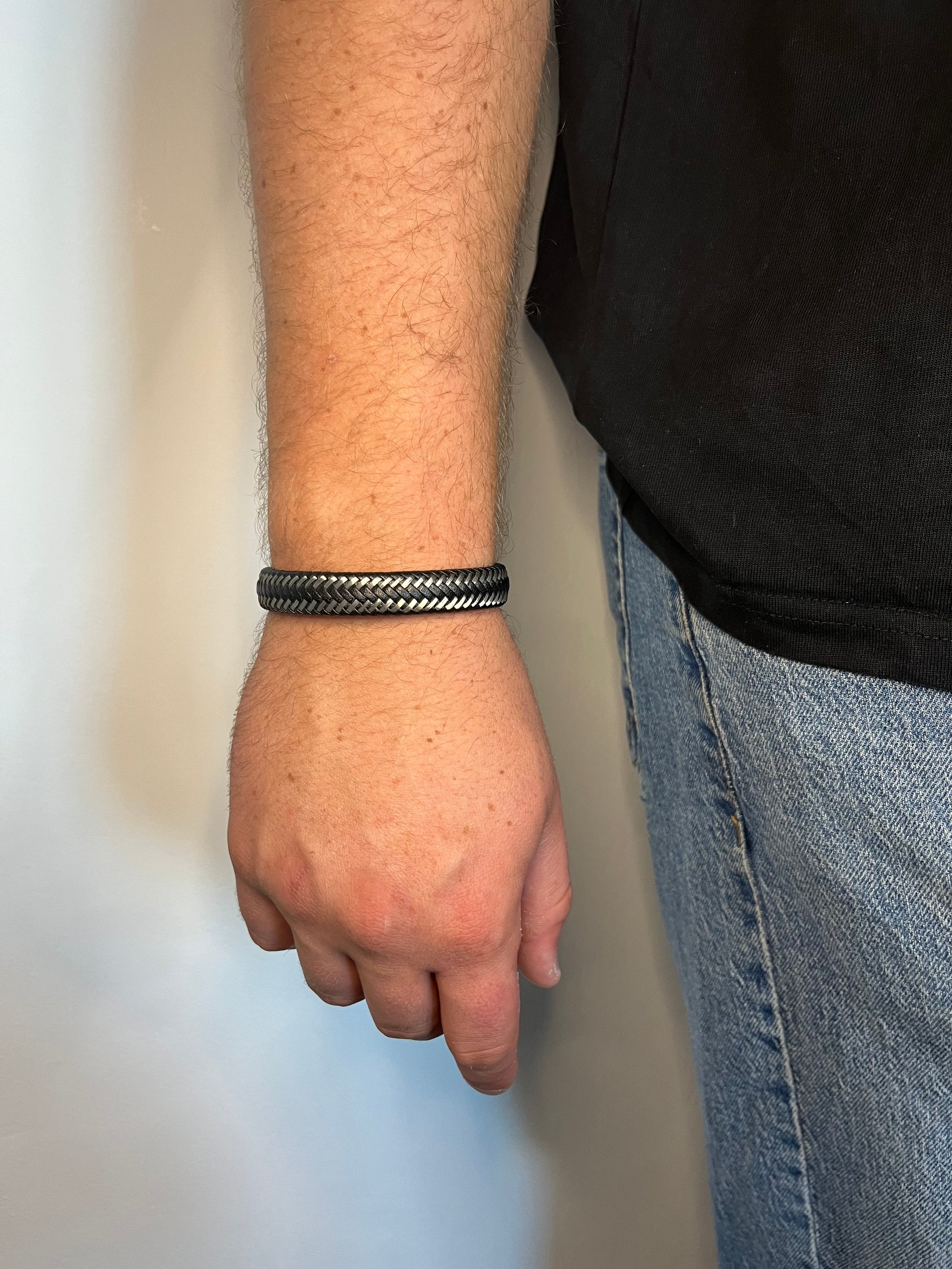 Un bracelet masculin au style affirmé ! Sa maille tressée noire et argentée apporte une touche moderne et élégante à toutes vos tenues.
