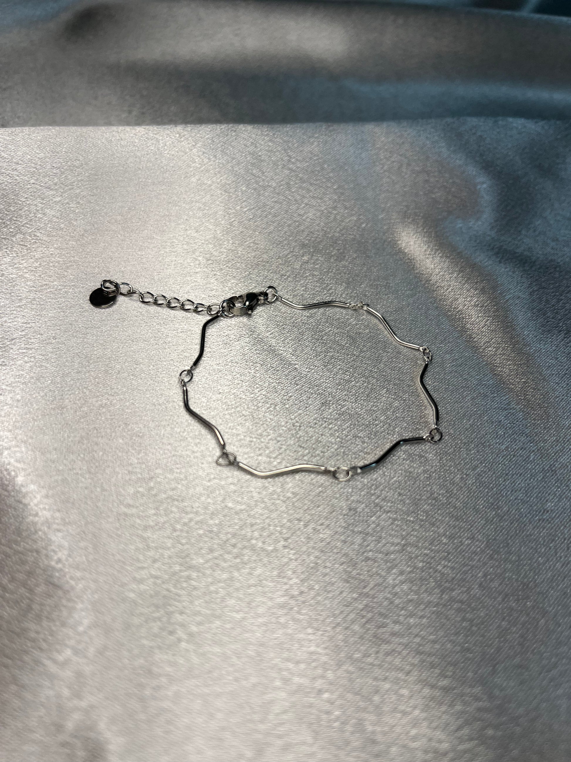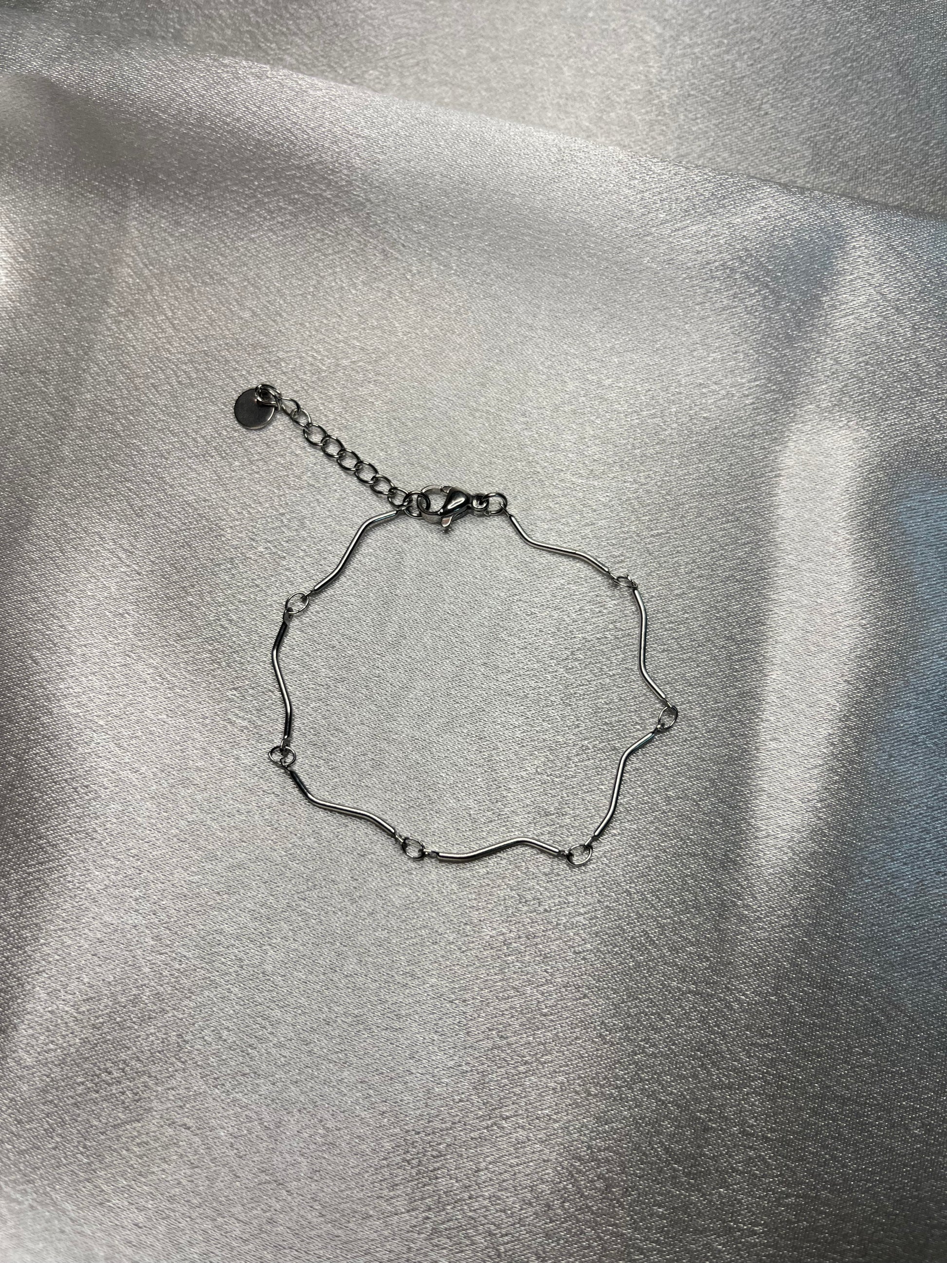 Laissez-vous séduire par la délicatesse du bracelet OPHÉLIE, une création fine et subtile qui habille le poignet avec discrétion. Ses maillons ondulés, reliés par de petites billes argentées, offrent un jeu de lumière élégant et moderne.