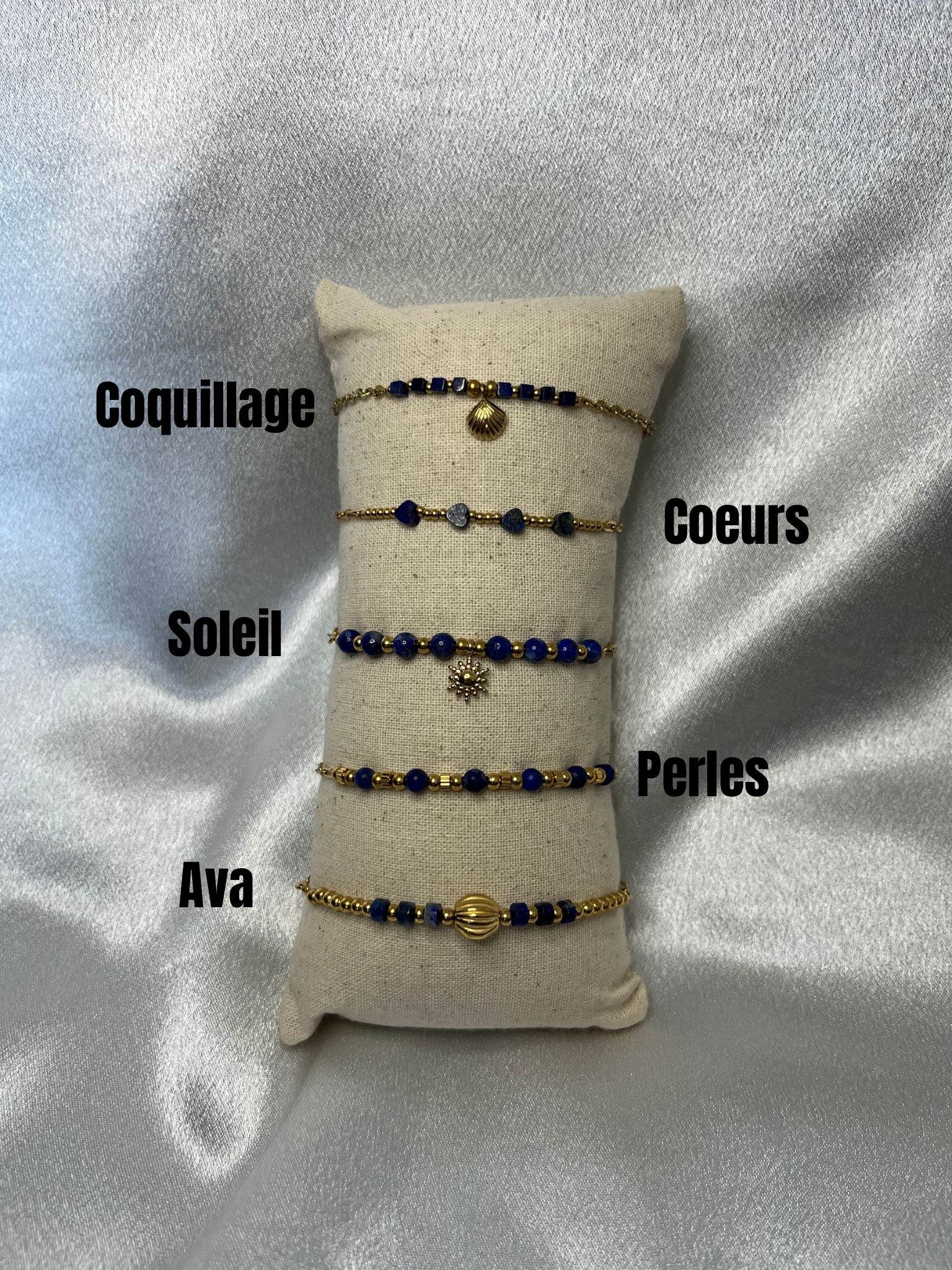 - Perles : alternance de perles bleu nuit et dorées pour un style élégant