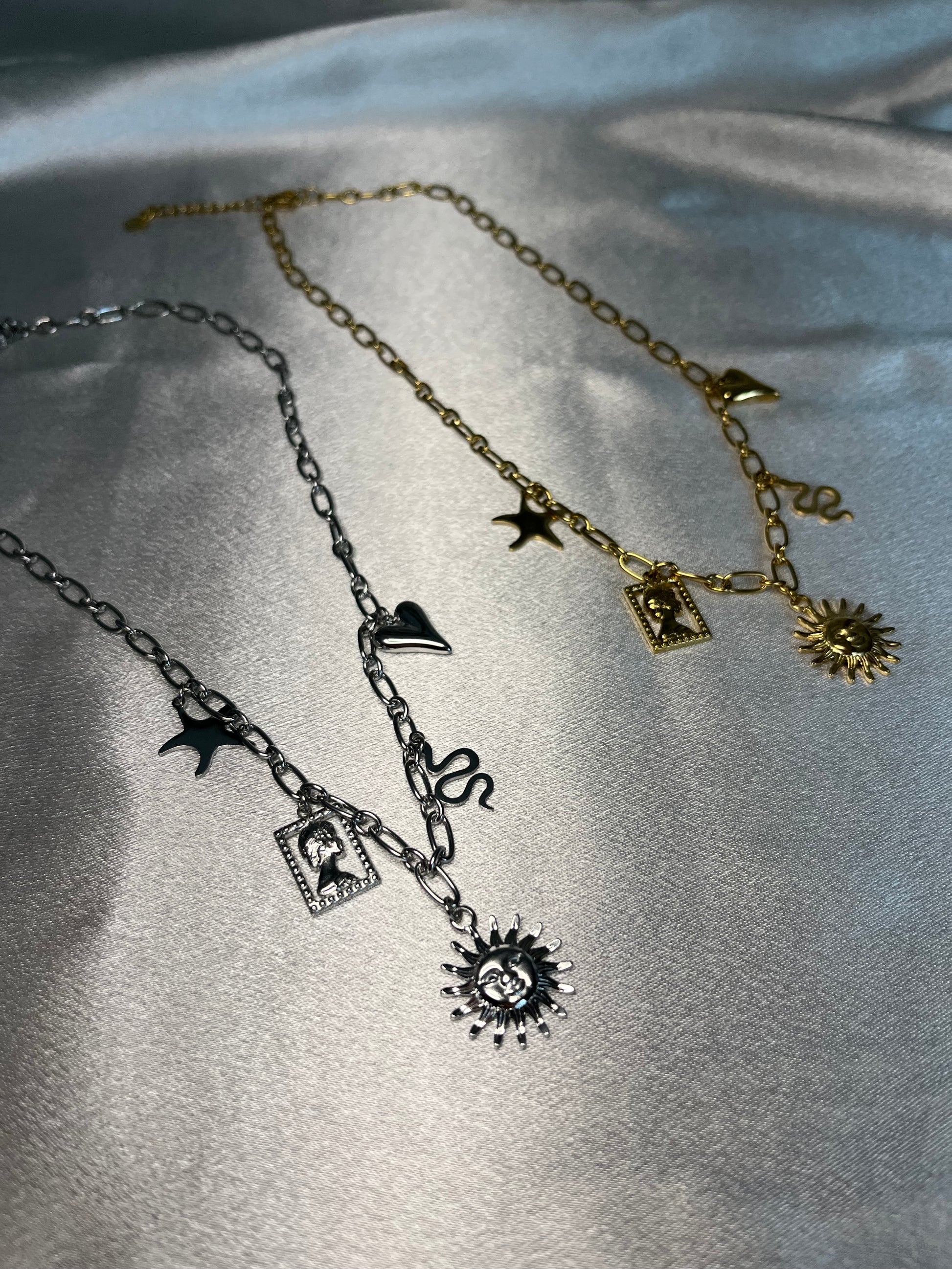 Le pendentif JEANNE séduit par son esprit charm’s raffiné, où chaque détail raconte une histoire. Un bijou fort en caractère, idéal pour donner du style et de la personnalité à vos tenues.