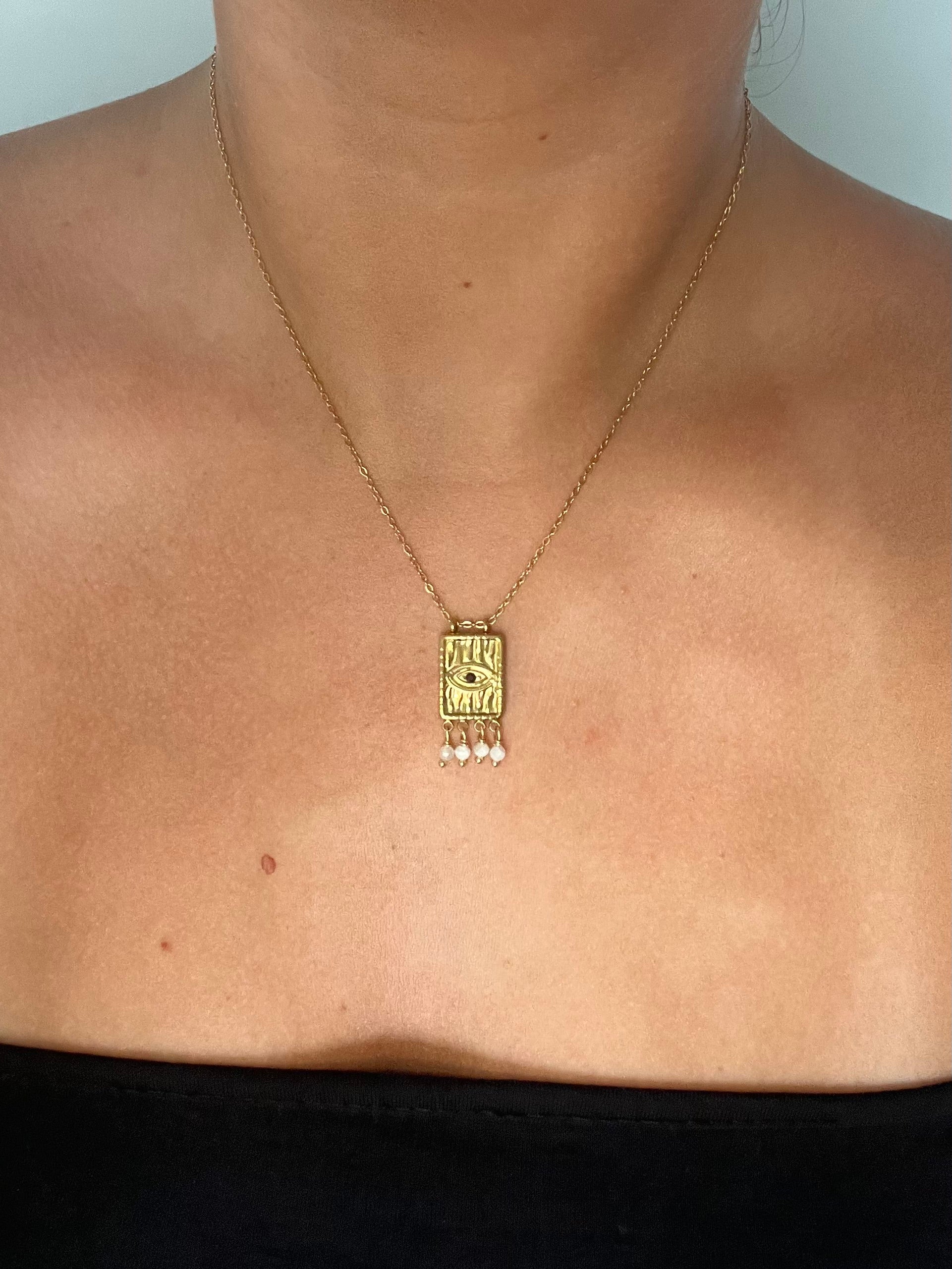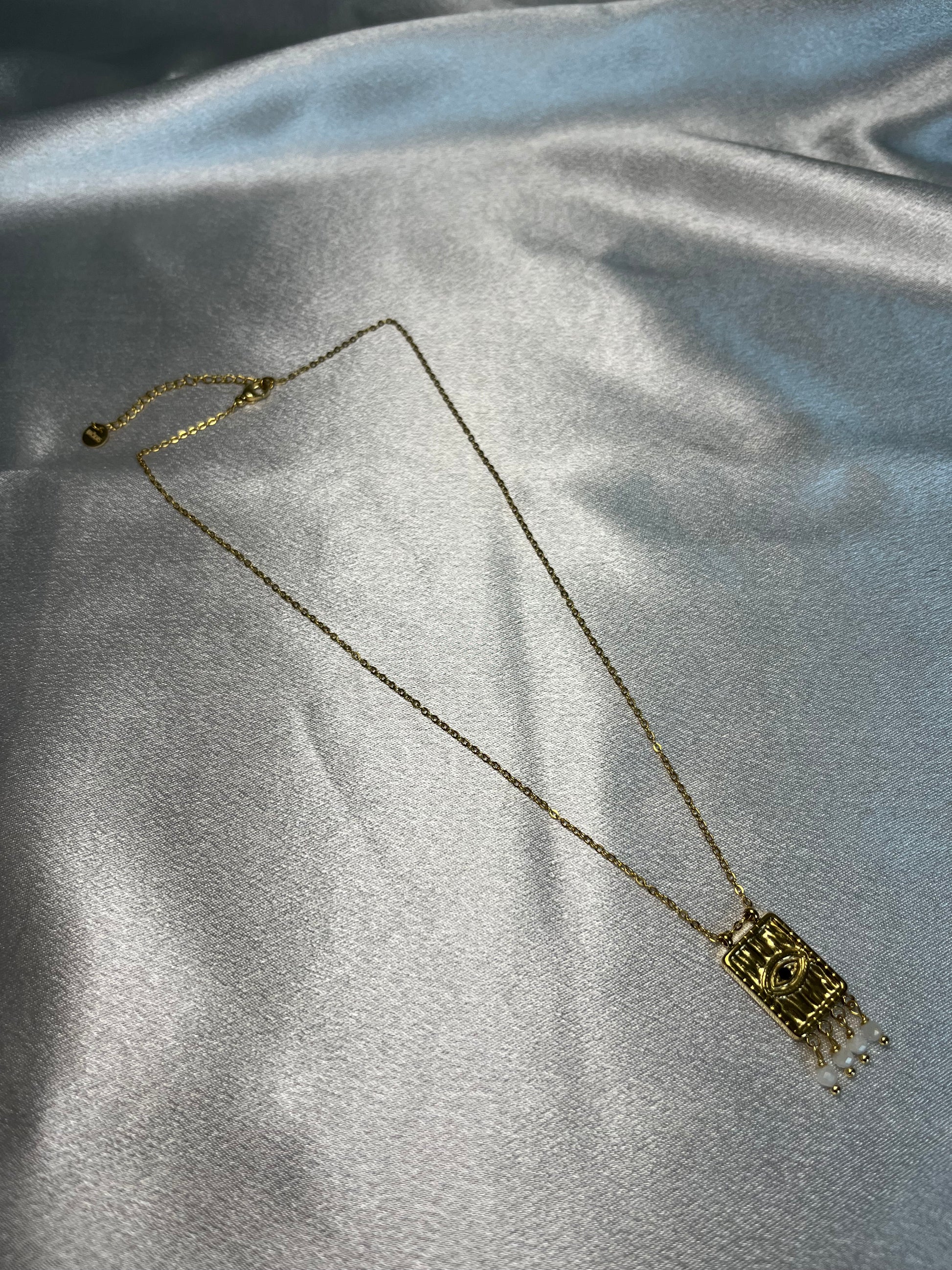 Mystérieux et symbolique, le pendentif ŒIL attire tous les regards grâce à son design unique et ses fines perles pendantes. Un bijou raffiné qui apporte une touche spirituelle et tendance à vos tenues, qu’elles soient simples ou habillées.